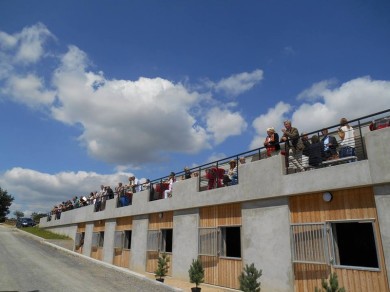L'écurie et le manège (24 X 42m) sont fermés et isolés pour garantir au cavalier et à son cheval des températures idéales été comme hiver. Notre Haras possède des douches froides et tièdes à l'intérieur, ainsi que trois salles de pansage et de séchage, une salle solarium, de spacieux vestiaires, un grand casier individuel avec chariot pour chaque propriétaire, un club-house confortable et une grande terrasse donnant à la fois sur le manège, sur la carrière et finalement sur une vue imprenable.